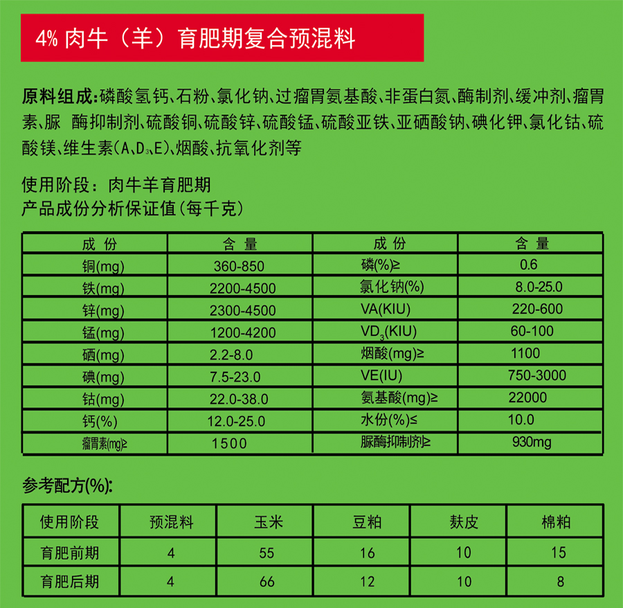 上一條:5%肉牛羊育肥期復(fù)合預(yù)混料